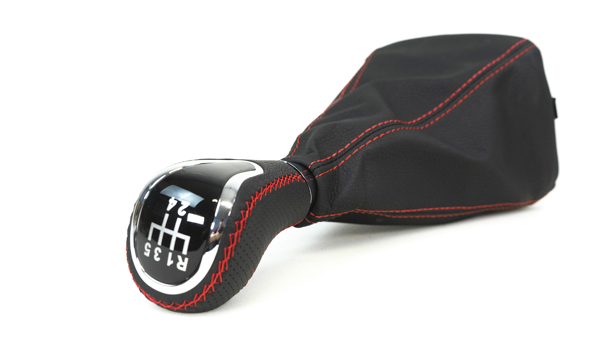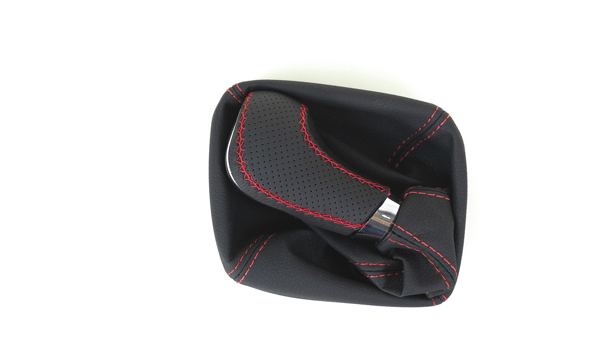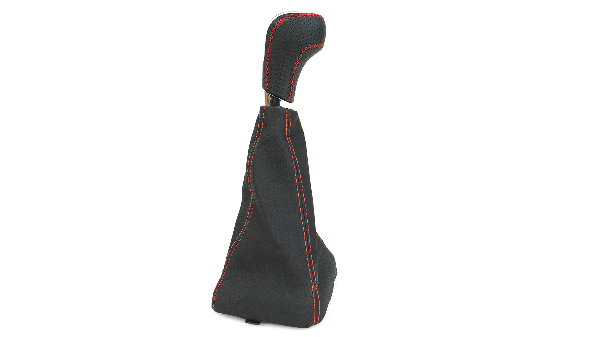 Ручка КПП универсальная, экокожа черная, красная строчка
