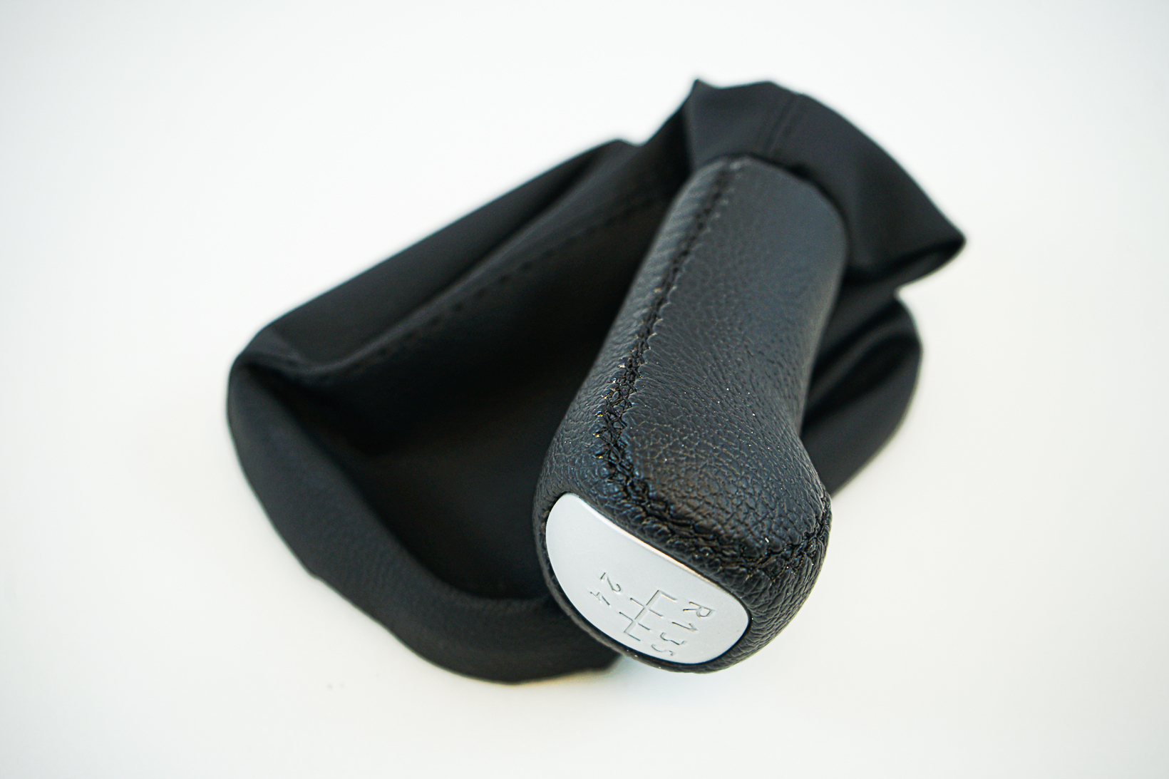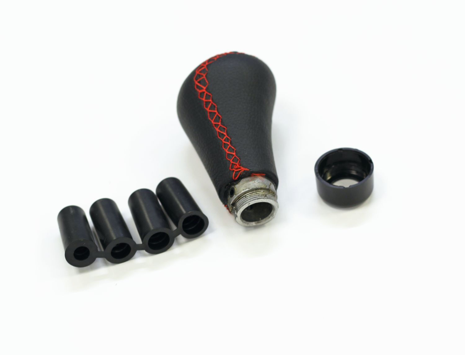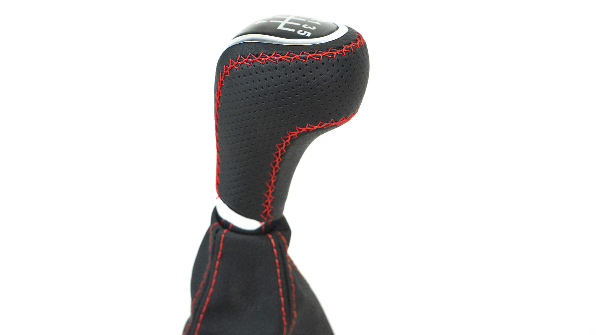 Ручка КПП универсальная, экокожа черная, красная строчка