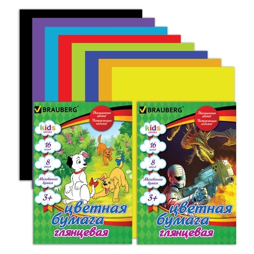 Цветная бумага мелованная в ассортименте BRAUBERG, A4, 16 л., 8 цв.