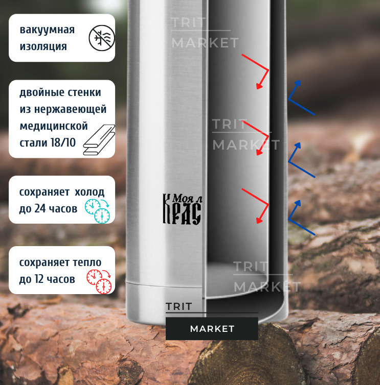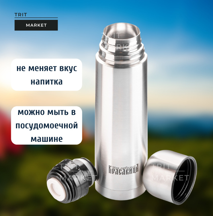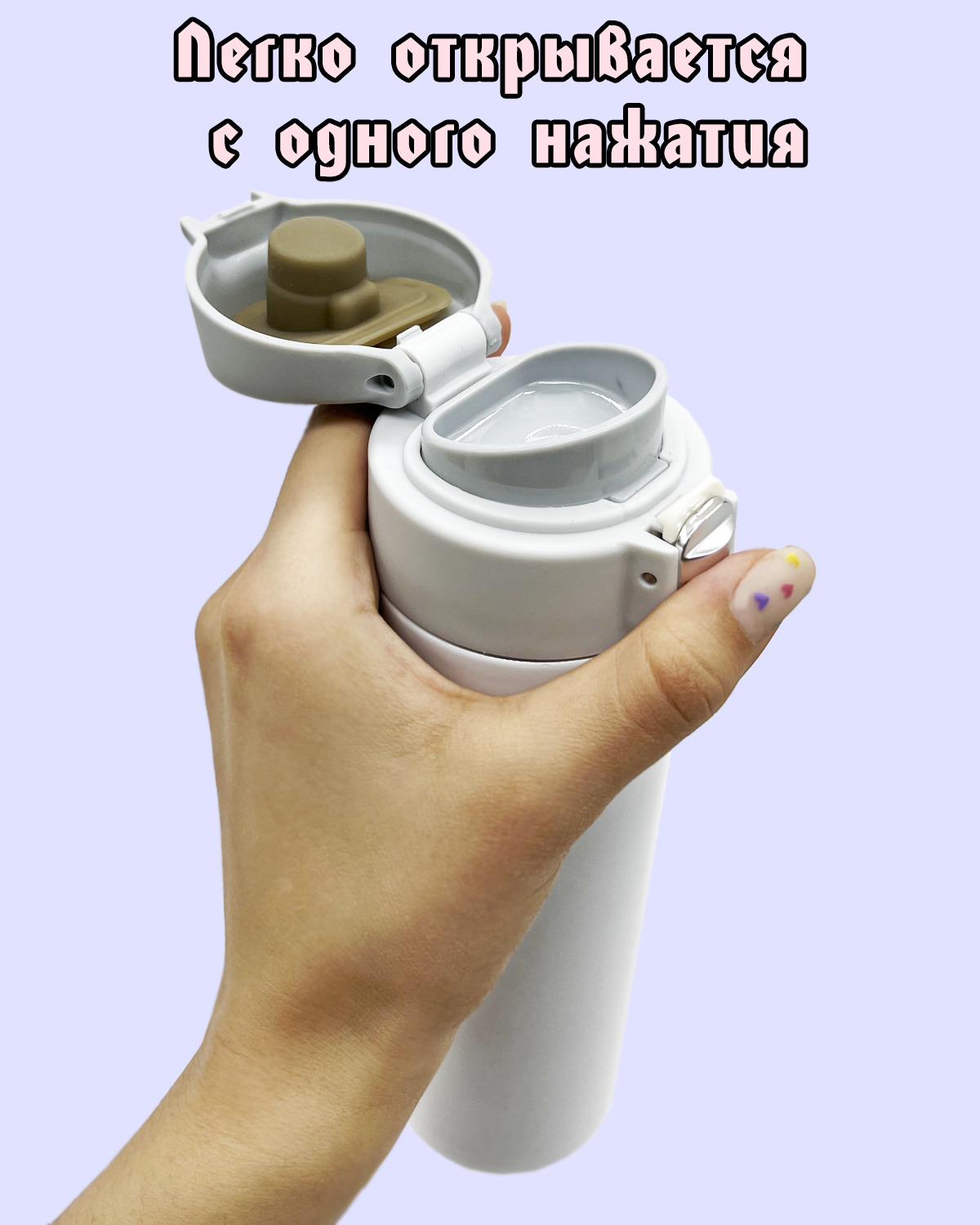 Термос, Термобутылка Вакуумный, Кнопка-клапан, Крышка-чашка "КрасавицА"