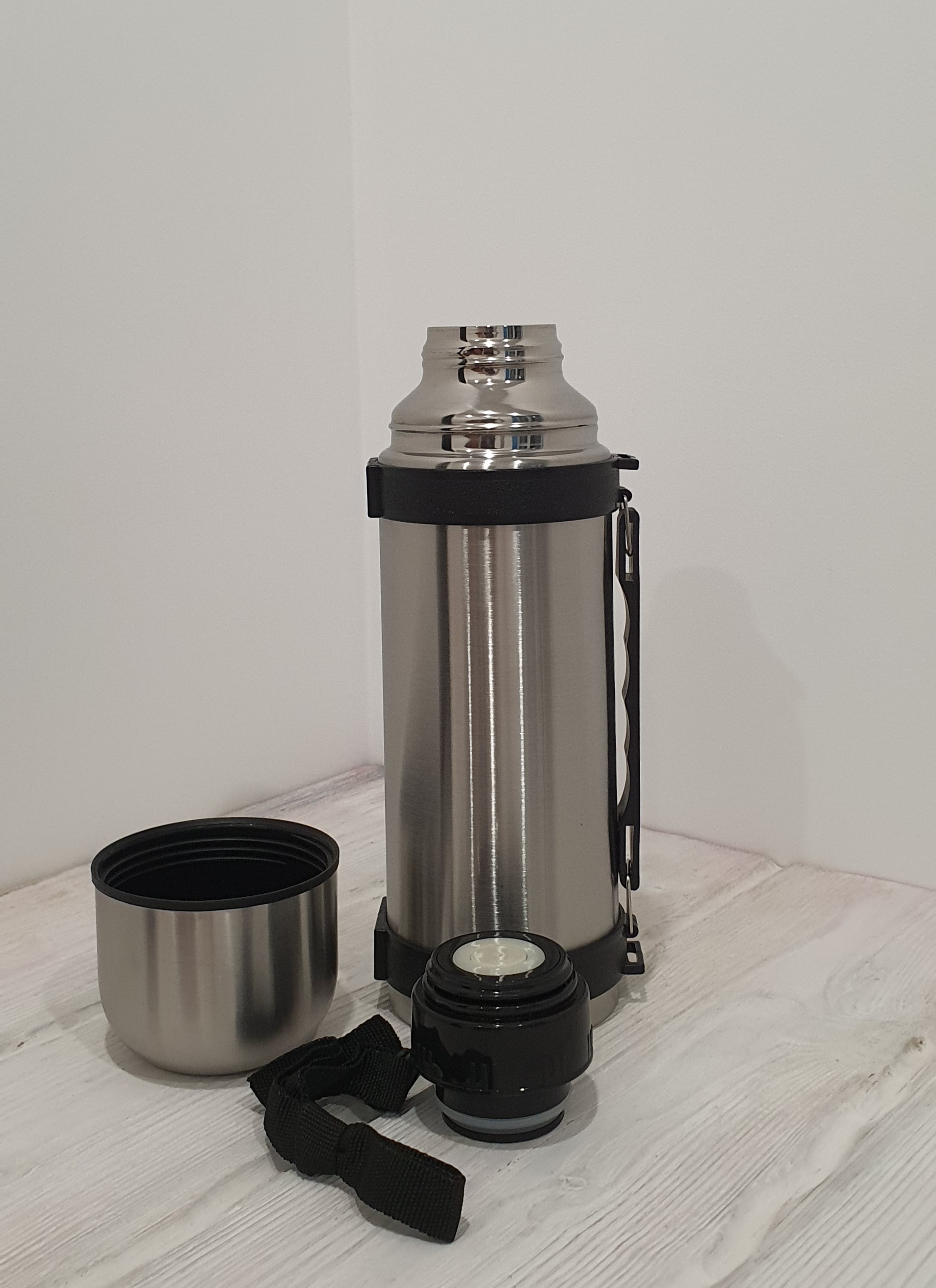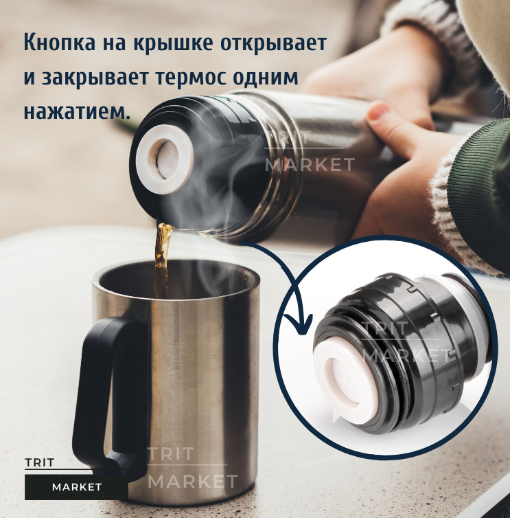 Термос, Термос с помпой Кнопка-клапан, Вакуумный, Крышка-чашка, 1,2 л