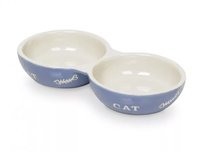 Миска NOBBY Миска двойная 22x11,5x3,5 см 0,26 л кер. голуб. с рис. CAT
