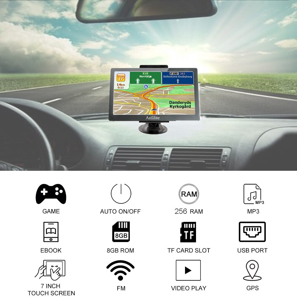 Anfilite Портативный 7-Дюймовый Кемпинг Автомобиль/Грузовик/Автомобиль Gps Навигация 8 Гб + 256 М Bluetooth Sat Nav Сша Россия Европа 3D Карты Навигатор