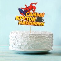 Топпер в торт "Самый крутой именинник" Человек-паук + набор свечей