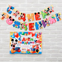 Гирлянда на люверсах с плакатом С днем рождения Микки маус 16*21 см
