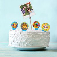 Набор топперов для торта "Поздравляем", 4 шпажки + держатель для фото