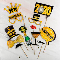 Фотобутафория на палочке "С Новым годом!", зол., 12 предм., 20 х 37 см