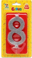 Свеча для торта большая с глиттером Miland Цифра 8, С-1890, серебристый