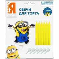 Набор свечей, рисунок - "Миньоны", размер - 6 см, упаковка (1 фигурная + 6 шт.) [арт. 28309]