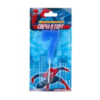 Свеча в торт Marvel цифра 7 "С Днем рождения", Человек Паук