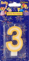 Action! Свеча-цифра для торта 3 года цвет темно-желтый