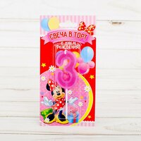 Свеча для торта Disney цифра 3 "С Днем рождения", Минни Маус