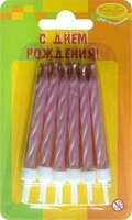 Пати Бум Набор свечей для торта Перламутр с держателями цвет розовый 6 см 12 шт