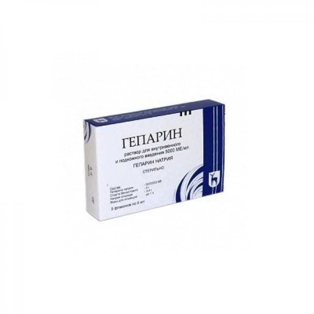 Гепарин раствор для внутривенного и подкожного введения 5000 МЕ/мл 5 мл флаконы 5 шт.