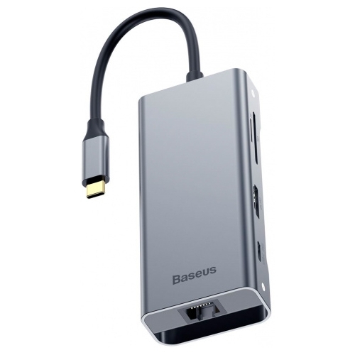 USB-концентратор Baseus Multi-functional HUB Type-C - 2xUSB/HDMI/Type-C/RJ45 (CATXF-0G), разъемов: 3