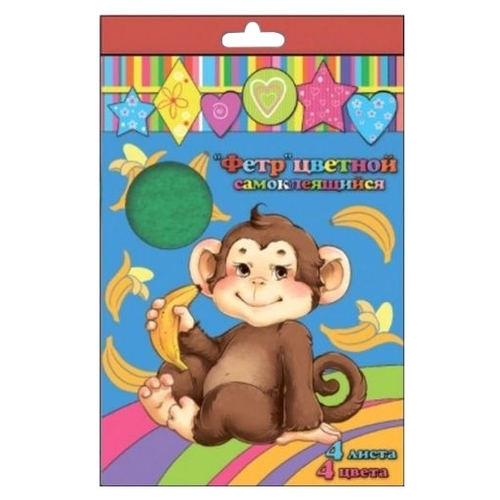 Феникс+ Набор цветного фетра самоклеящегося, А4, 4 цвета (45659)