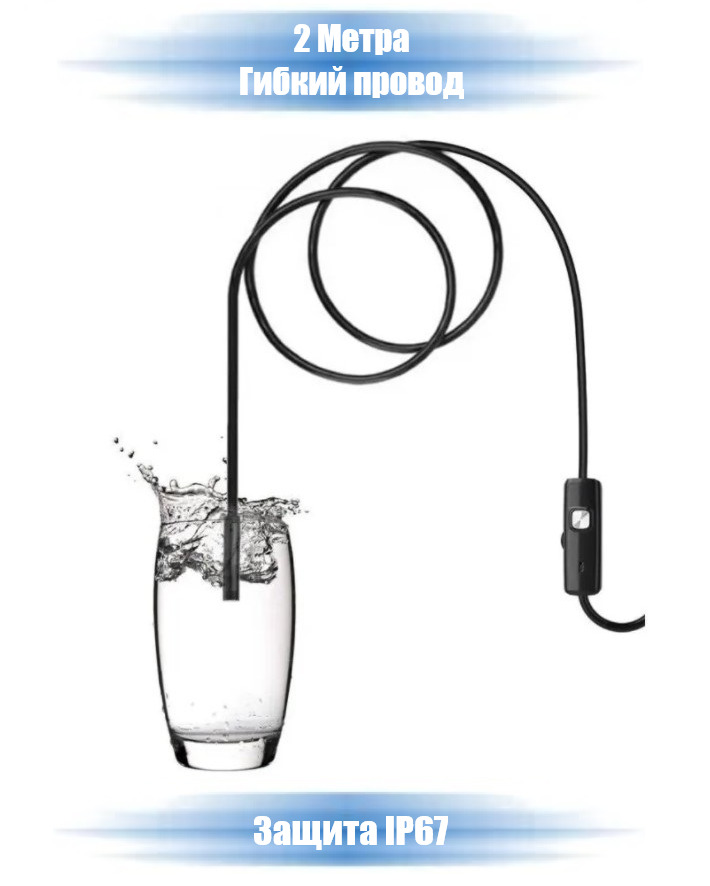 Эндоскоп, водонепроницаемый 2 метра, с подсветкой (совместим с ПК/ноутбуками, а так же смартфонами)