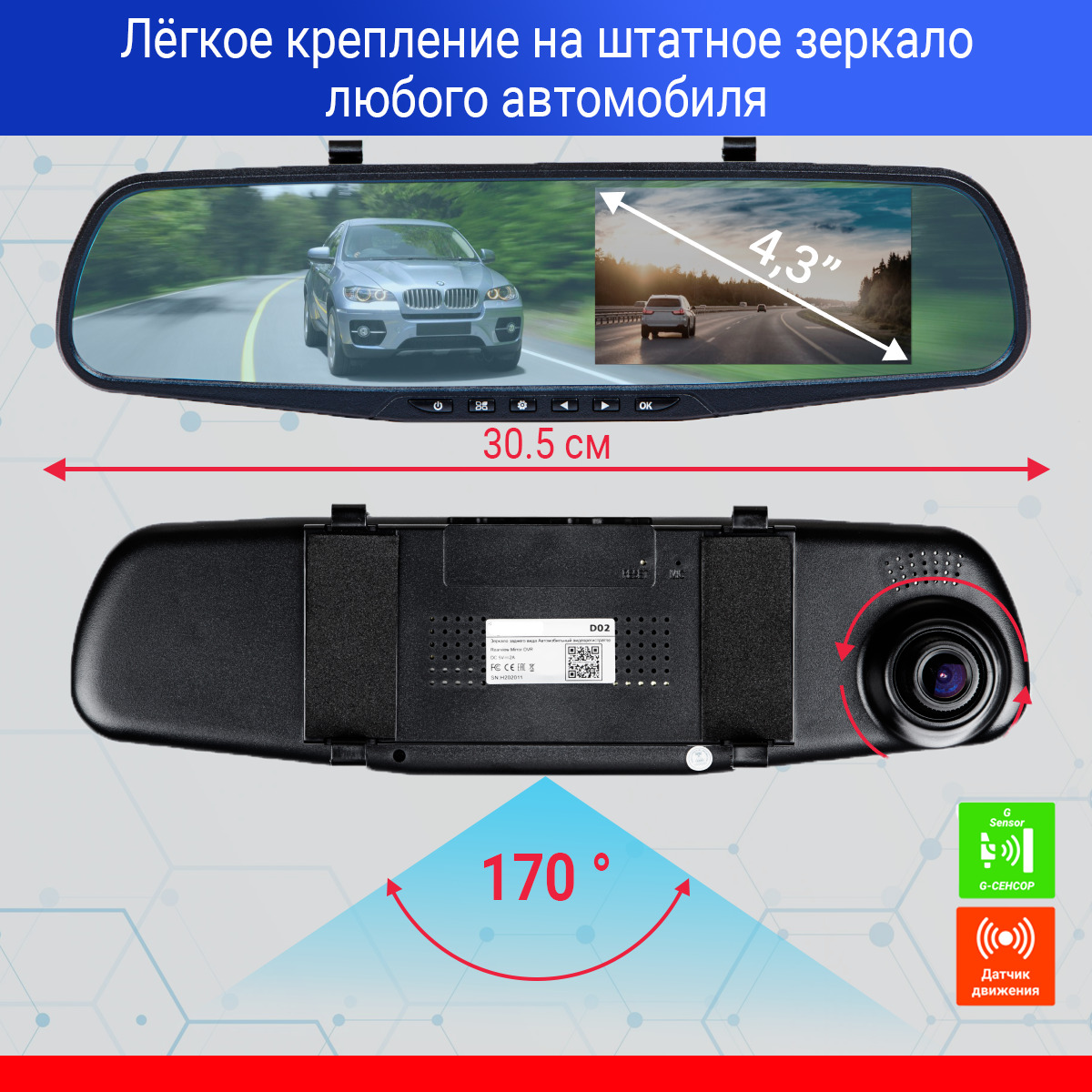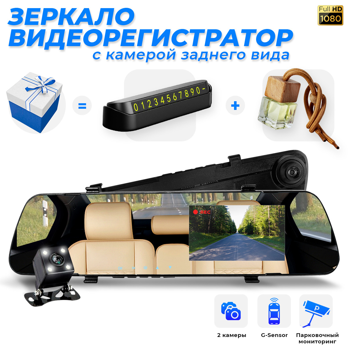 Видеорегистратор-зеркало заднего вида автомобильный, экран 7", 2 камеры, 170 градусов