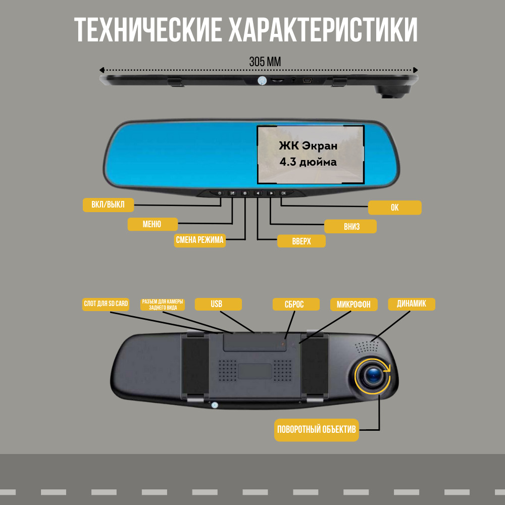 Автомобильный видеорегистратор с камерой заднего вида Vehicle Blackbox DVR Full HD TOPSTORE