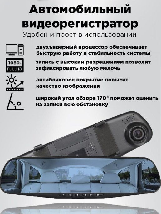 Full HD видеорегистратор зеркало с камерой заднего вида сенсорным экраном 10 дюймов.