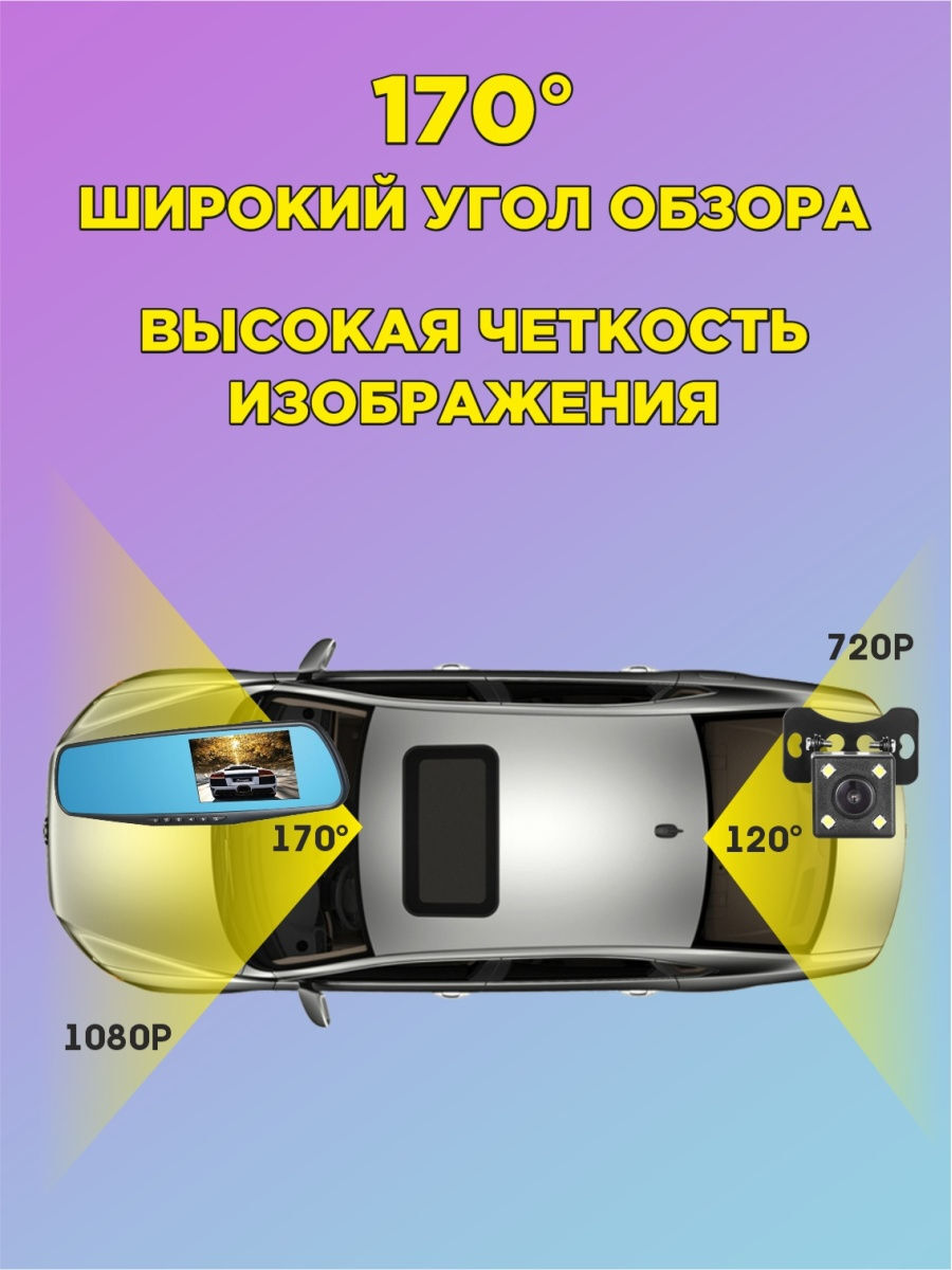 Видеорегистратор-зеркало заднего вида автомобильный, экран 7", 2 камеры, 150 градусов