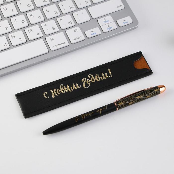 Подарочный набор металлическая ручка и кожзам чехол "Счастья в Новом году!", синяя паста, 1 мм