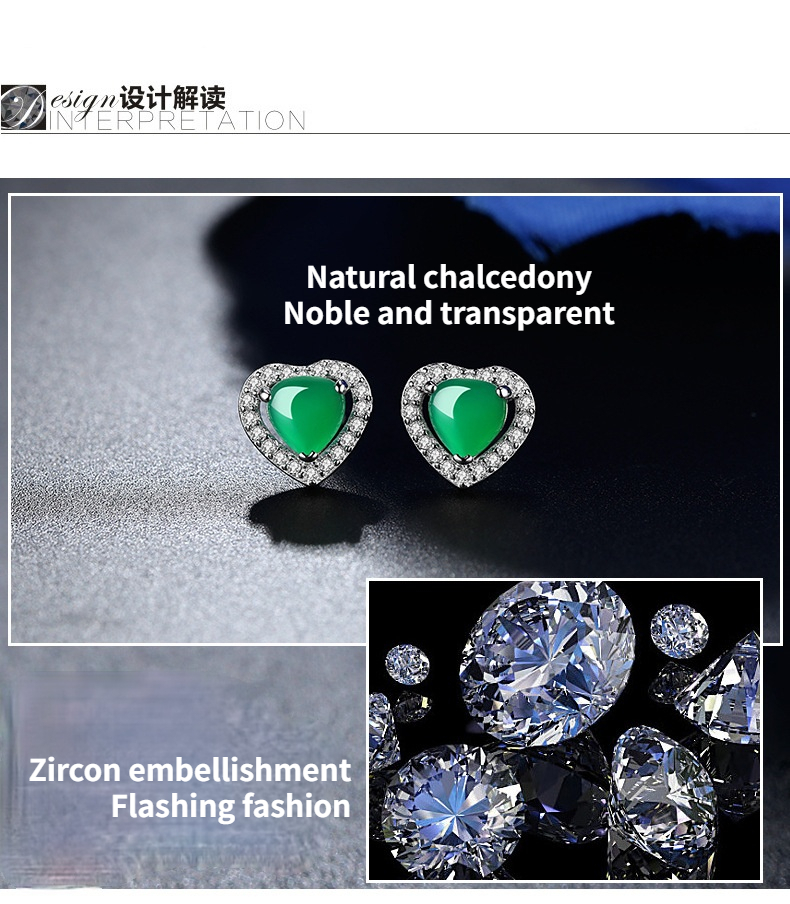 925 Серебряные серьги Халцедон Циркон Серьга-гвоздик(зеленый)