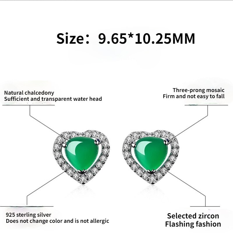 Серьи из чистого серебра S925 для женщин в форме сердца зеленый