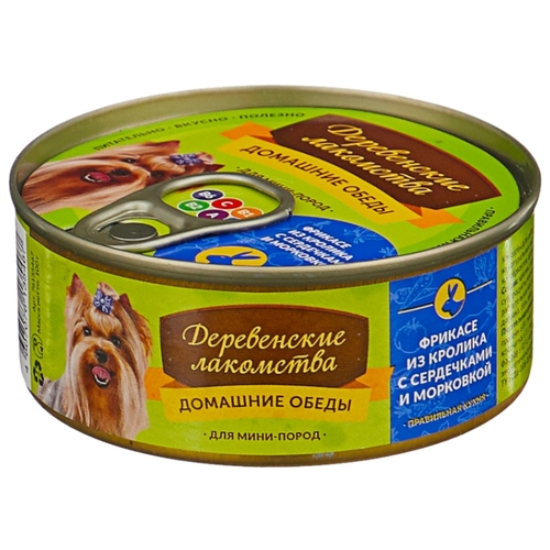 Корм для собак Деревенские лакомства Домашние обеды: фрикасе из кролика с сердечками и морковкой