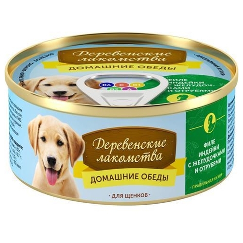 Корм для собак Деревенские лакомства Домашние обеды: филе индейки с желудочками и отрубями (0.1 кг) 1 шт.
