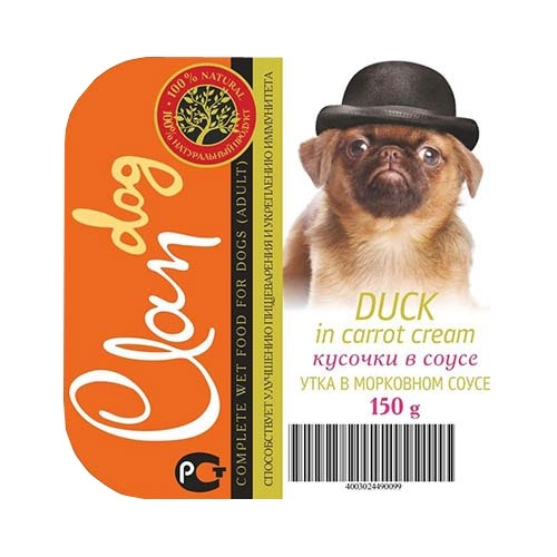 Корм для собак CLAN Кусочки в соусе утка в морковном соусе для собак