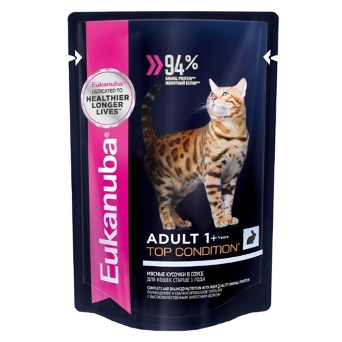 Корм для кошек Eukanuba Top Condition для здоровья кожи и шерсти, с кроликом 85 г (кусочки в соусе)