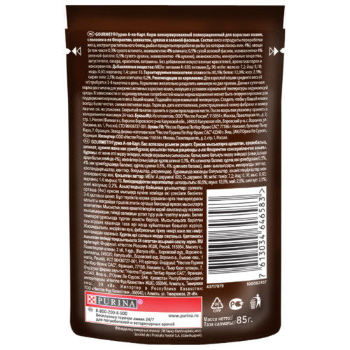 Корм для кошек Gourmet А-ля Карт а-ля Флорентине беззерновой, с лососем 24шт. х 85 г (кусочки в соусе)