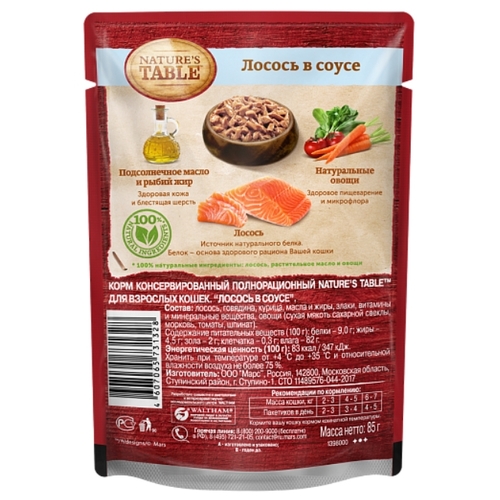 Корм для кошек Nature's Table с лососем 24шт. х 85 г