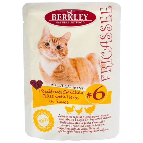 Корм для кошек Berkley Fricassee для кошек #6 Домашняя птица с кусочками курицы и травами в соусе