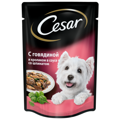 Корм для собак Cesar Из говядины и кролика в соусе со шпинатом (0.1 кг) 24 шт.