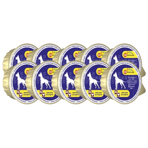 Корм для собак VitAnimals Консервы для собак Мясное ассорти (0.125 кг) 10 шт.