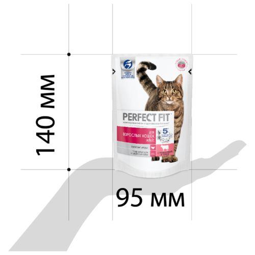 Корм для кошек Perfect Fit для здоровья кожи и шерсти, с говядиной 24шт. х 85 г (кусочки в соусе)