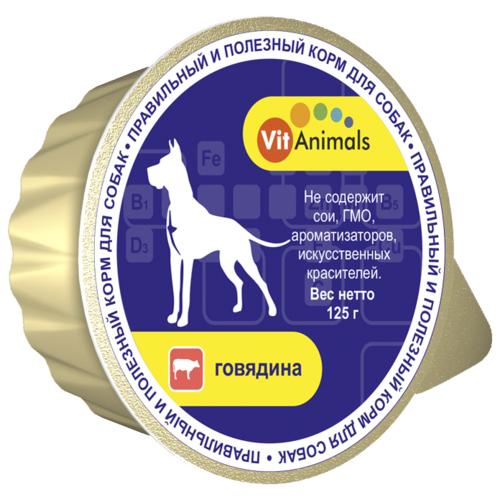 Корм для собак VitAnimals Консервы для собак Говядина (0.125 кг) 1 шт.