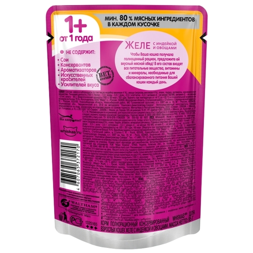 Корм для кошек Whiskas с индейкой 85 г (кусочки в желе)