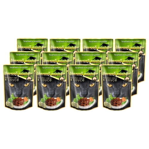 Корм для кошек Ночной охотник Мясные кусочки в соусе Телятина и индейка