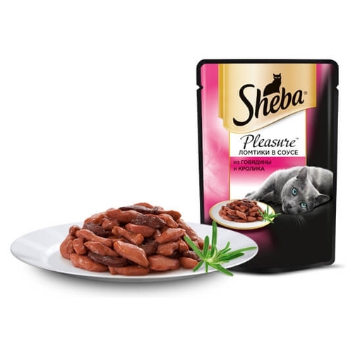 Корм для кошек Sheba Pleasure с кроликом, с говядиной 85 г (кусочки в соусе)