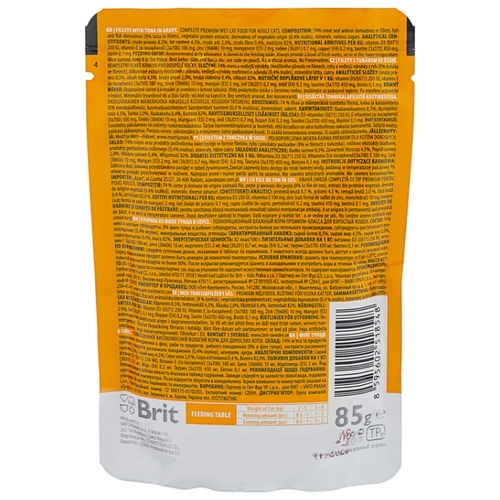 Корм для кошек Brit Premium беззерновой, с тунцом 85 г (кусочки в соусе)