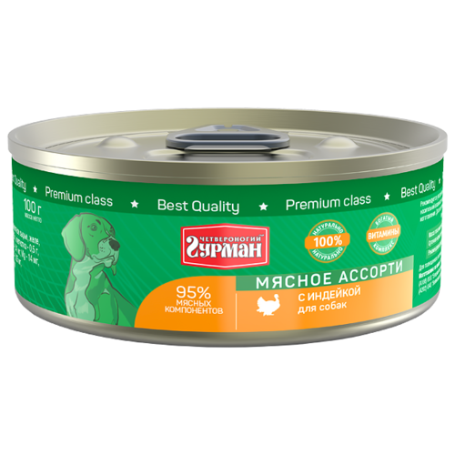 Корм для собак Четвероногий Гурман (0.1 кг) 1 шт. Мясное ассорти с индейкой для собак