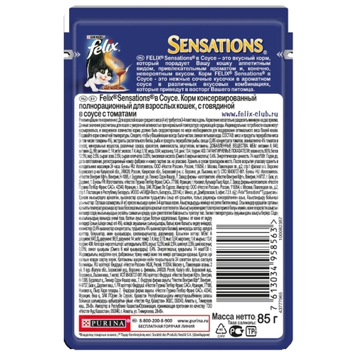 Корм для кошек Felix Sensations с говядиной 85 г (кусочки в соусе)