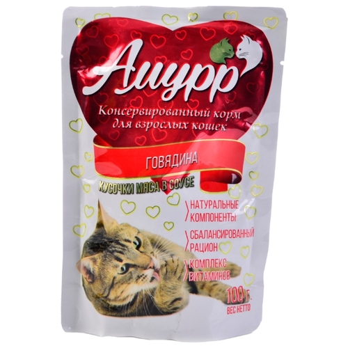 Корм для кошек Амурр Кусочки мяса в соусе "Говядина"