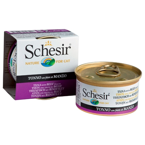 Корм для кошек Schesir с тунцом, с говядиной 14шт. х 85 г (кусочки в желе)