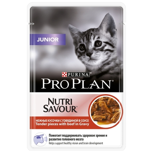 Корм для котят Purina Pro Plan Nutrisavour беззерновой, с говядиной 24шт. х 85 г (кусочки в соусе)