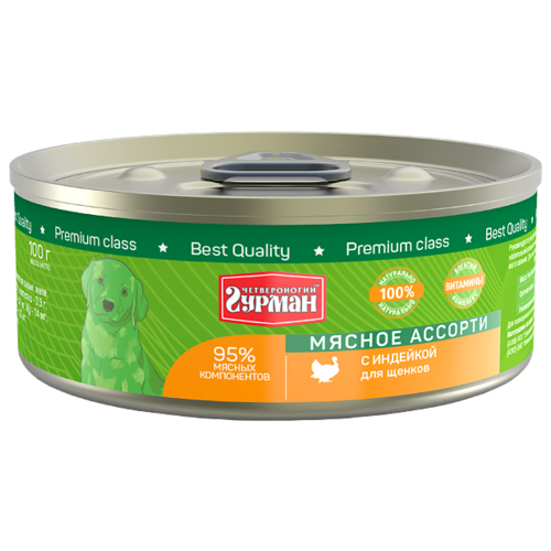 Корм для собак Четвероногий Гурман (0.1 кг) 24 шт. Мясное ассорти с индейкой для щенков