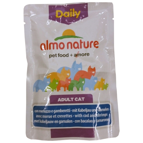 Корм для кошек Almo Nature Daily Menu беззерновой, с треской, с креветками 70 г (кусочки в желе)